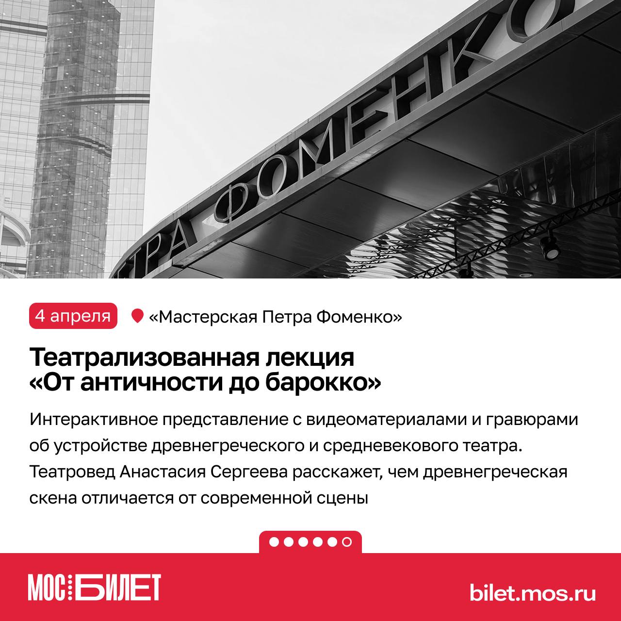 В театрах Москвы пройдут творческие вечера, экскурсии и интерактивные лекции. Билеты — в сервисе «Мосбилет», количество мест ограничено.