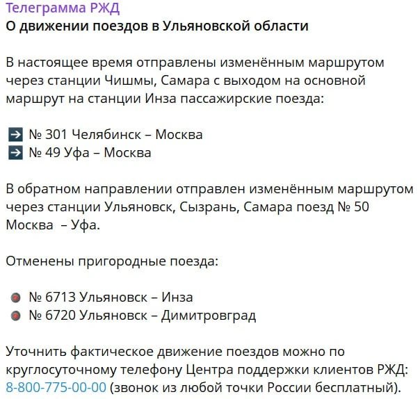 Для пассажиров подготовлены три пункта временного размещения в Ульяновске, первая крупная группа в составе 352 человек уже доставлена на станцию Ульяновск-Центральный. Об этом сообщили региональные власти, Минтранс и РЖД.По...
