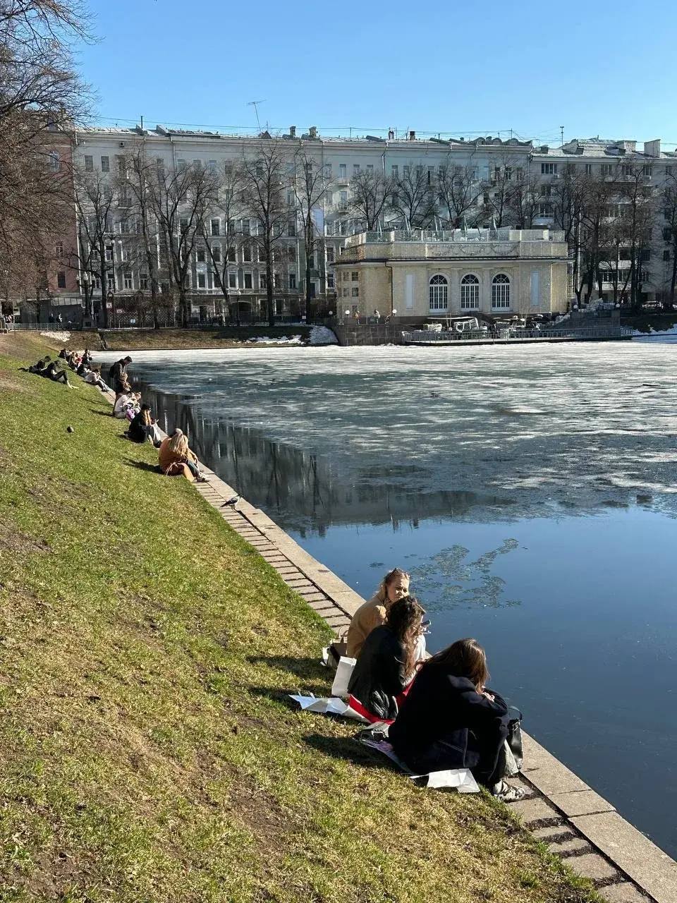 На Патриарших прудах москвичи открыли сезон пикников. Местные вовсю наслаждаются тёплой погодой и прекрасными видами.