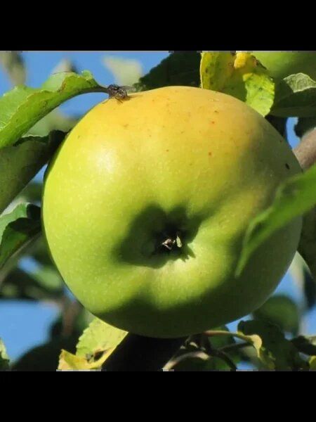 Дерево обладает мощной, раскидистой кроной, а плоды имеют плоскоокруглую форму с весом около 200 граммов. Цвет кожицы варьируется от зеленоватого до желтоватого, с легким румянцем на солнечной стороне. Плоды, собранные в срок, могут быть сохранены до марта при оптимальных условиях хранения.