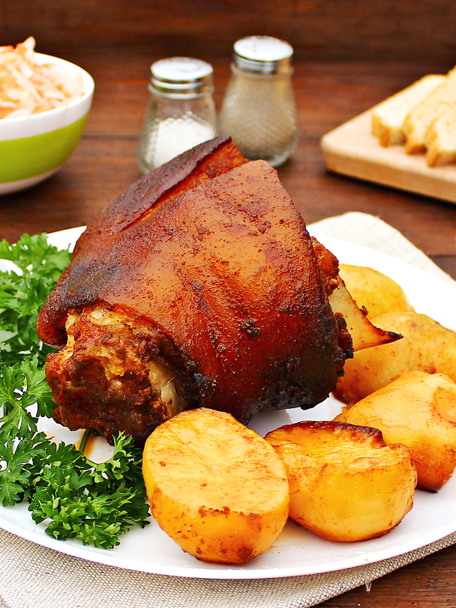 Восторг от домашнего ужина начинается с аромата, который излучает румяная свиная рулька, запеченная до золотистой корочки в компании ароматного картофеля. Мясо становится невероятно нежным благодаря плавящемуся в нем жиру, а картошка, впитывающая все соки и пряности, превращается в незаменимый гарнир. Это блюдо радует не только вкусом, но и простотой приготовления: уложив все ингредиенты в духовку, можно спокойно заниматься своими делами.
