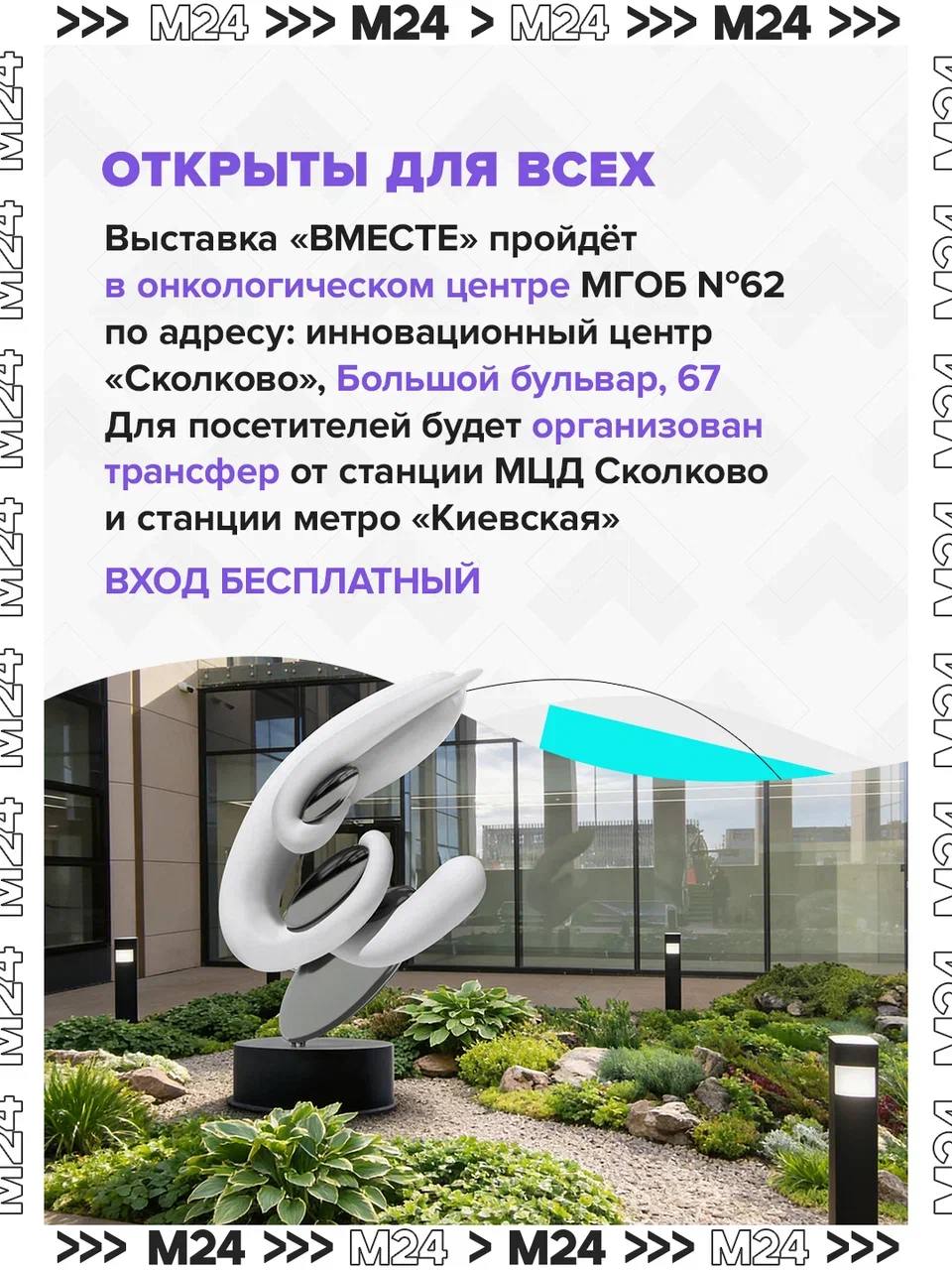 Она пройдёт в новом онкологическом центре в Сколкове и будет посвящена идее исцеляющей среды, расскажет о важности поддержки. Вход для посетителей бесплатный.