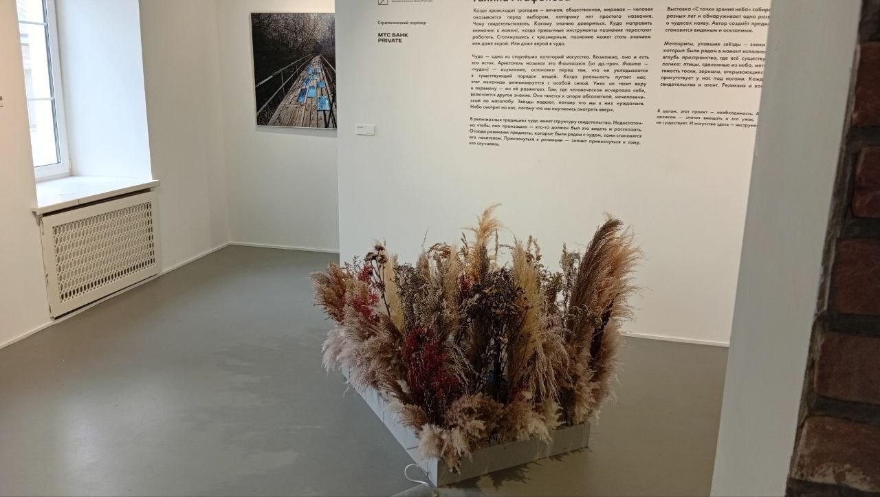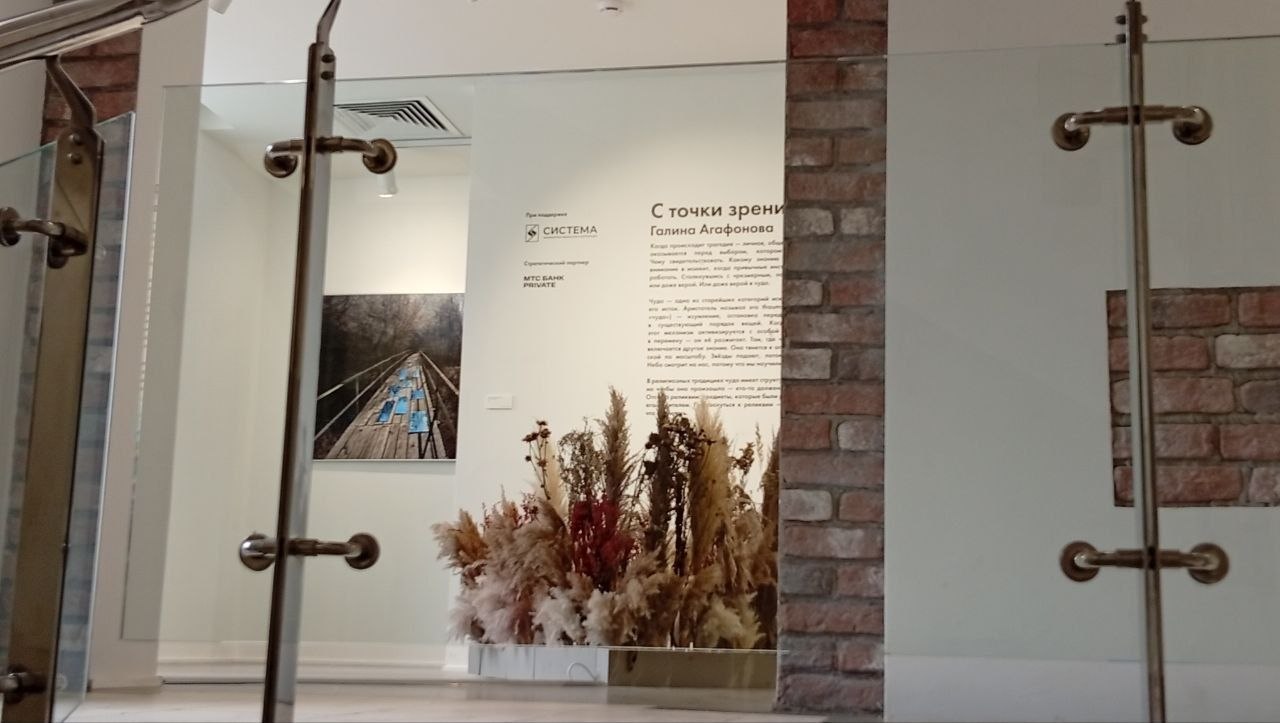 Москва радует своим художественным разнообразием. Отличная выставка "С точки зрения неба" фотографа Галины Агафоновой, в очень уютном художественном пространстве в самом центре Москвы. Интересная находка с зеркалами на заднем плане, среди того, что кажеться серой и обыденной повседневностью. Отдельные, умело размещенные зеркала внезапно захватывают то, чего вы не можете видеть в этот момент, потому что это прямо за вашей спиной. И это придает ощущение целостности восприятия. Благодаря контрастам между фоном и отражением в зеркале, вспоминается Куинджи, который был мастером такого мимолетнего мгновения.