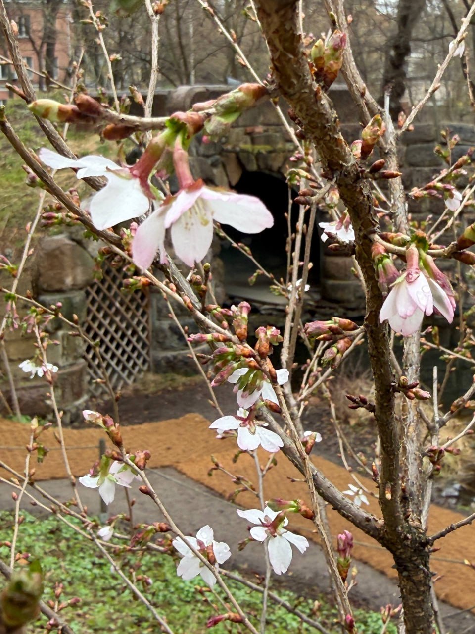 Вишня мелкопильчатая находится в Дальневосточном саду у грота. Всего в ботсаде около 10 таких деревьев.