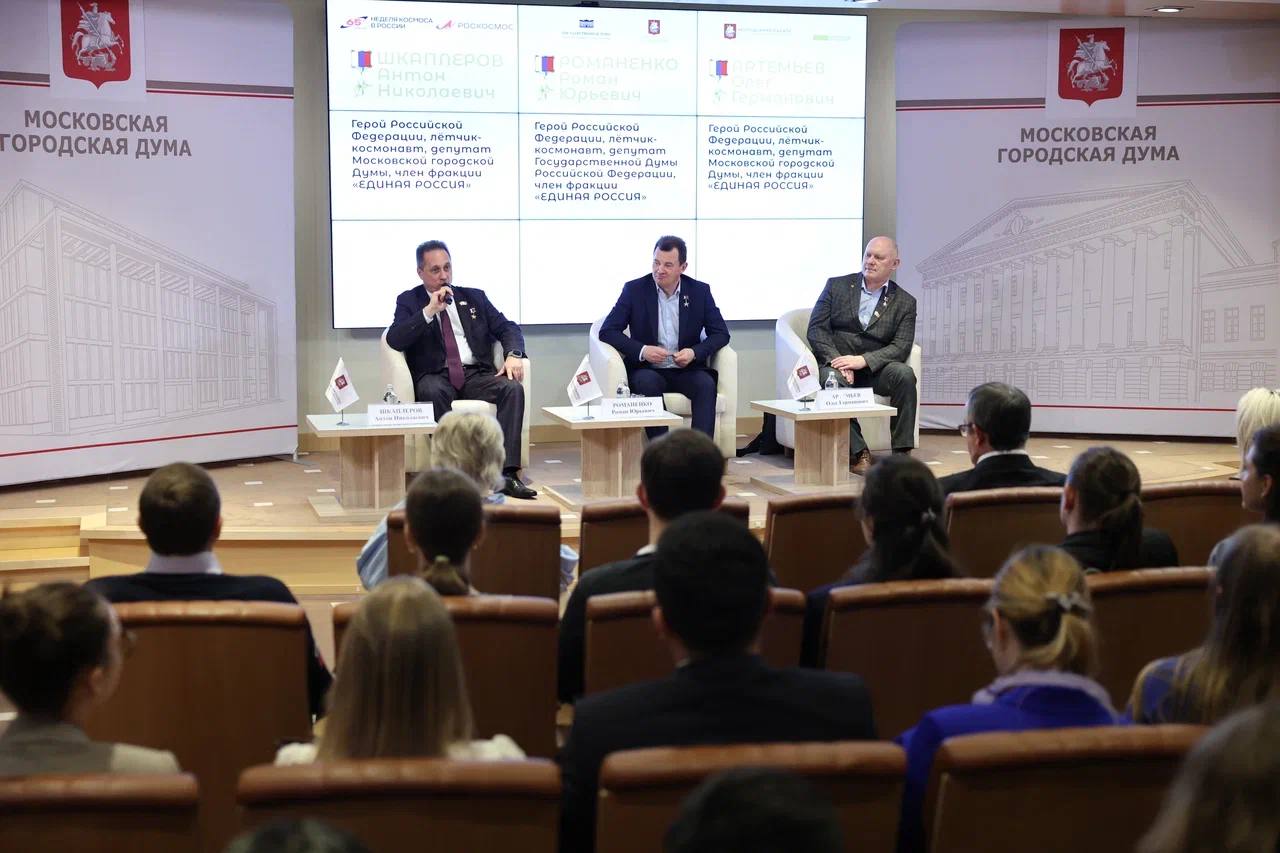 Перед игрой участники пообщались с Героями России, космонавтами Антоном Шкаплеровым, Олегом Артемьевым и Романом Романенко – обсудили, как попасть в профессию, что ждёт космический туризм и каким будет будущее отрасли.