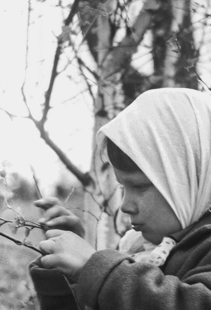 Фотофакт: девочка с распустившейся берёзовой веточкой. Москва. 2 мая 1960 г. Фото Б.В. Лукьянова (сдатчик Т.В. Малинина, по материалам Акции «Москва — с заботой об истории. Московская фотолетопись»). Главархив Москвы