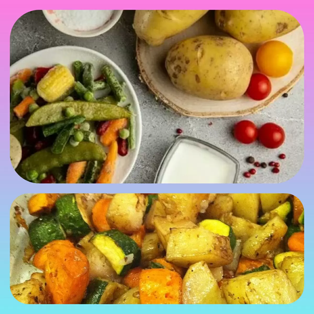 Обед: Запеченная картошка с морковью и репчатым луком.
