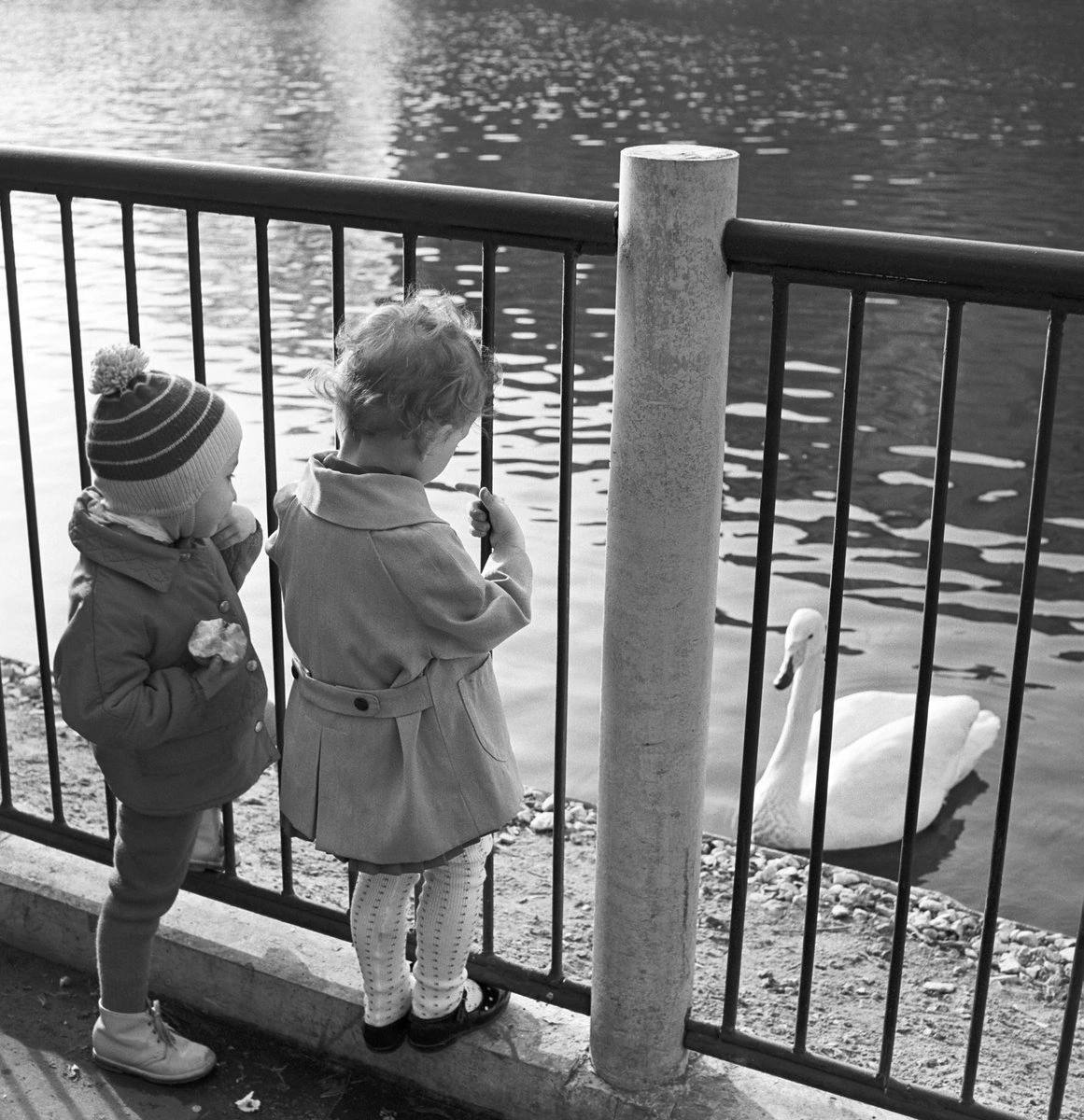 Судя по всему, такая игра в гляделки явно интересна обеим сторонам. Для малышей в этот момент большая белая птица — это настоящее чудо, которое можно рассмотреть вблизи, не скрывая неподдельного детского удивления.