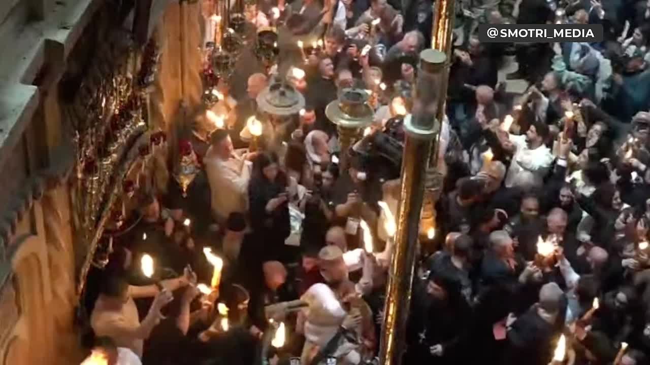 Кадры из Иерусалима, где верующие наблюдали, как Благодатный огонь сошёл в храме Гроба Господня.