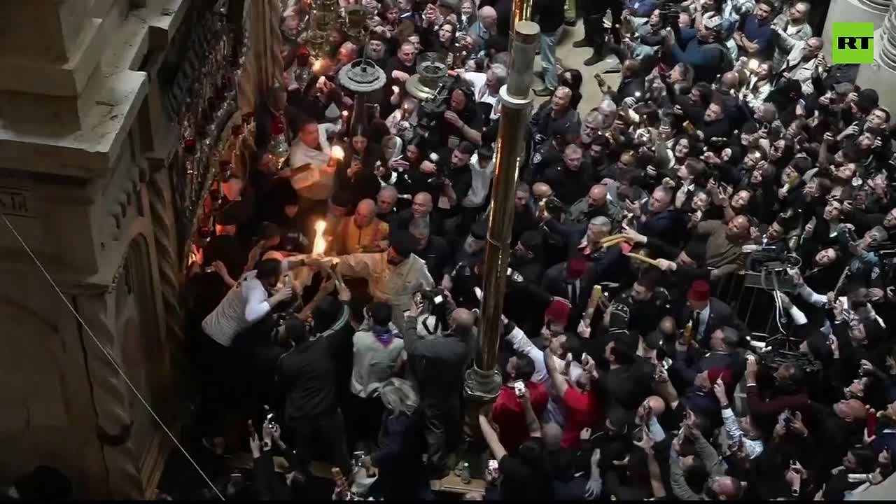 Благодатный огонь сошёл в Храме Гроба Господня в Иерусалиме