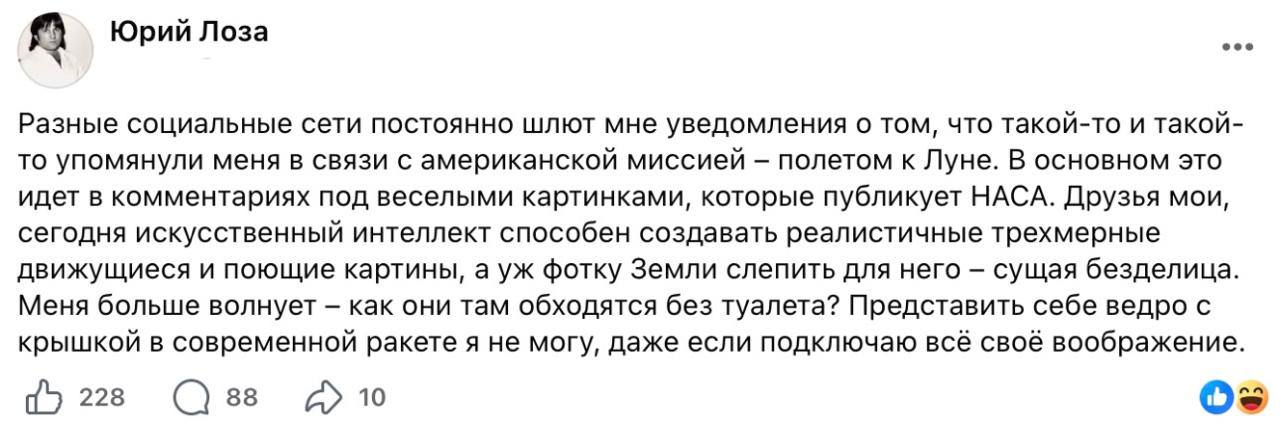 Например, певец Юрий Лоза заявил, что космические кадры могут быть сгенерированы.