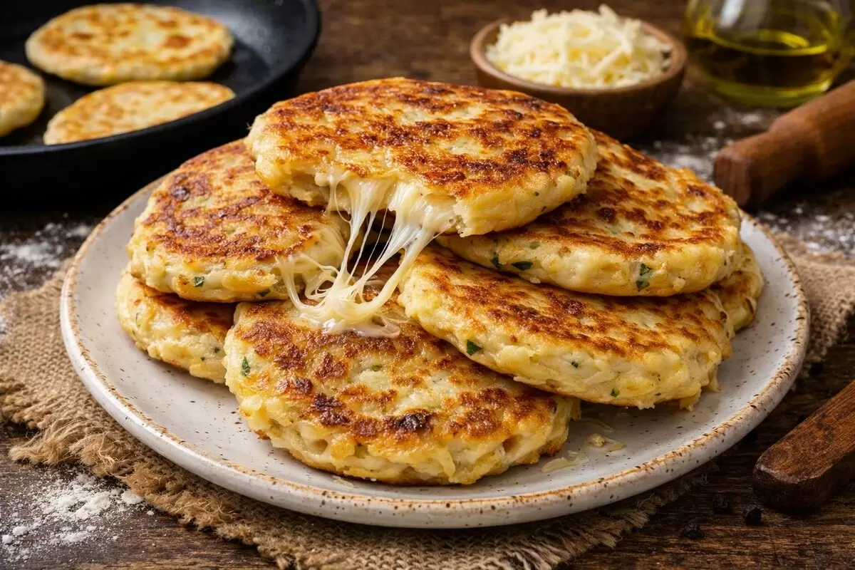 - Сыр в рецепте обеспечивает невероятный вкус, аромат и ту самую желанную тянучесть, которая делает каждую лепёшку ещё более аппетитной.