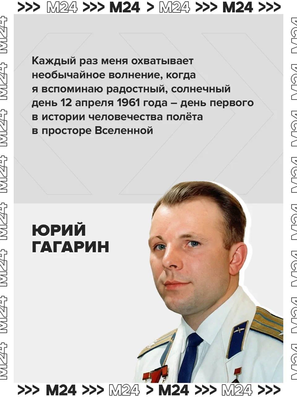«Я безмерно рад, что моя любимая Отчизна первой в мире совершила этот полёт, первой в мире проникла в космос», — обратился первый космонавт к соотечественникам.