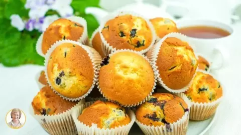 Для проверки готовности используйте деревянную шпажку: она должна выходить абсолютно сухой. Voil?, кексы с черной смородиной готовы к подаче!