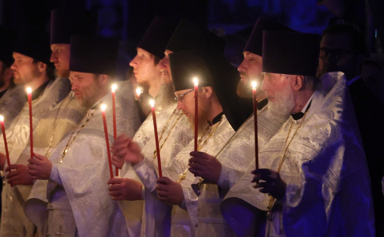По традиции в Пасхальную ночь в Храм Христа Спасителя из Храма Воскресения Христова (Гроба Господня) в Иерусалиме был принесён Благодатный огонь, сошедший в этот день на Гроб Господень.