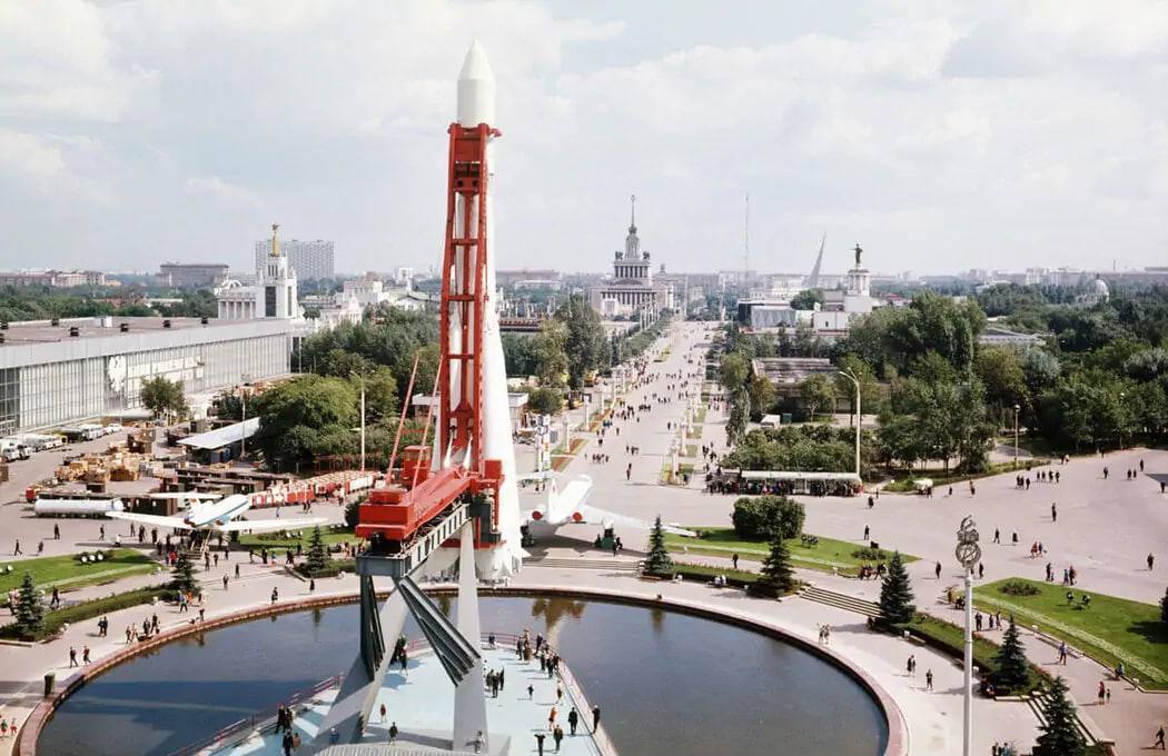 Фотофакт: Полноразмерный макет ракеты-носителя «Восток» на площади Промышленности, 1969