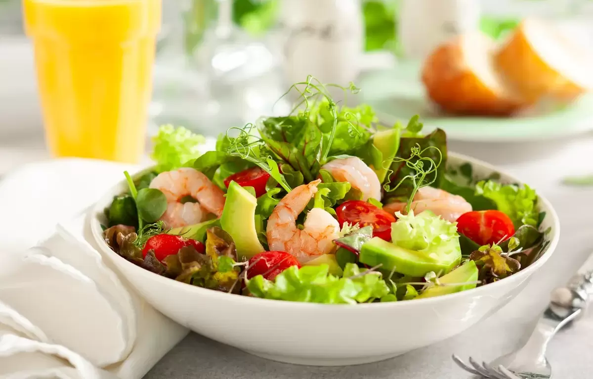 - Салат с креветками и авокадо