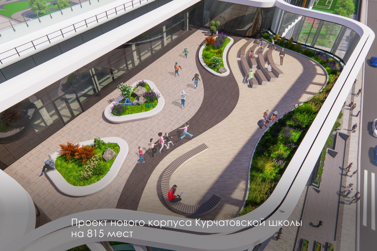 Рядом со школой сделают спортивное ядро, включая беговую дорожку на 4 полосы, площадки для игры в футбол, баскетбол и волейбол, зону для прыжков в длину.