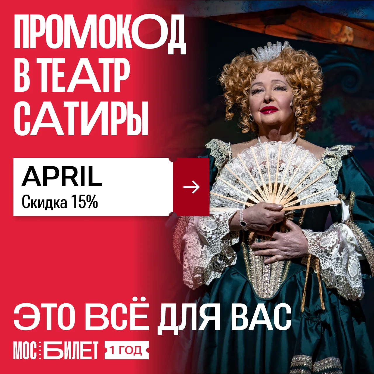 В апреле в Театре сатиры — классика, которая до сих пор звучит современно. И приятный бонус: билеты можно взять со скидкой 15% по промокоду