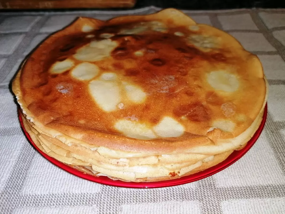 Из этих ингредиентов получится 20-25 блинчиков, в зависимости от густоты теста. Мелкий секрет: после выпекания стоит перевернуть стопку блинов, чтобы первый блин оказался сверху — это не только выглядит красиво, но и сохраняет свежесть.
