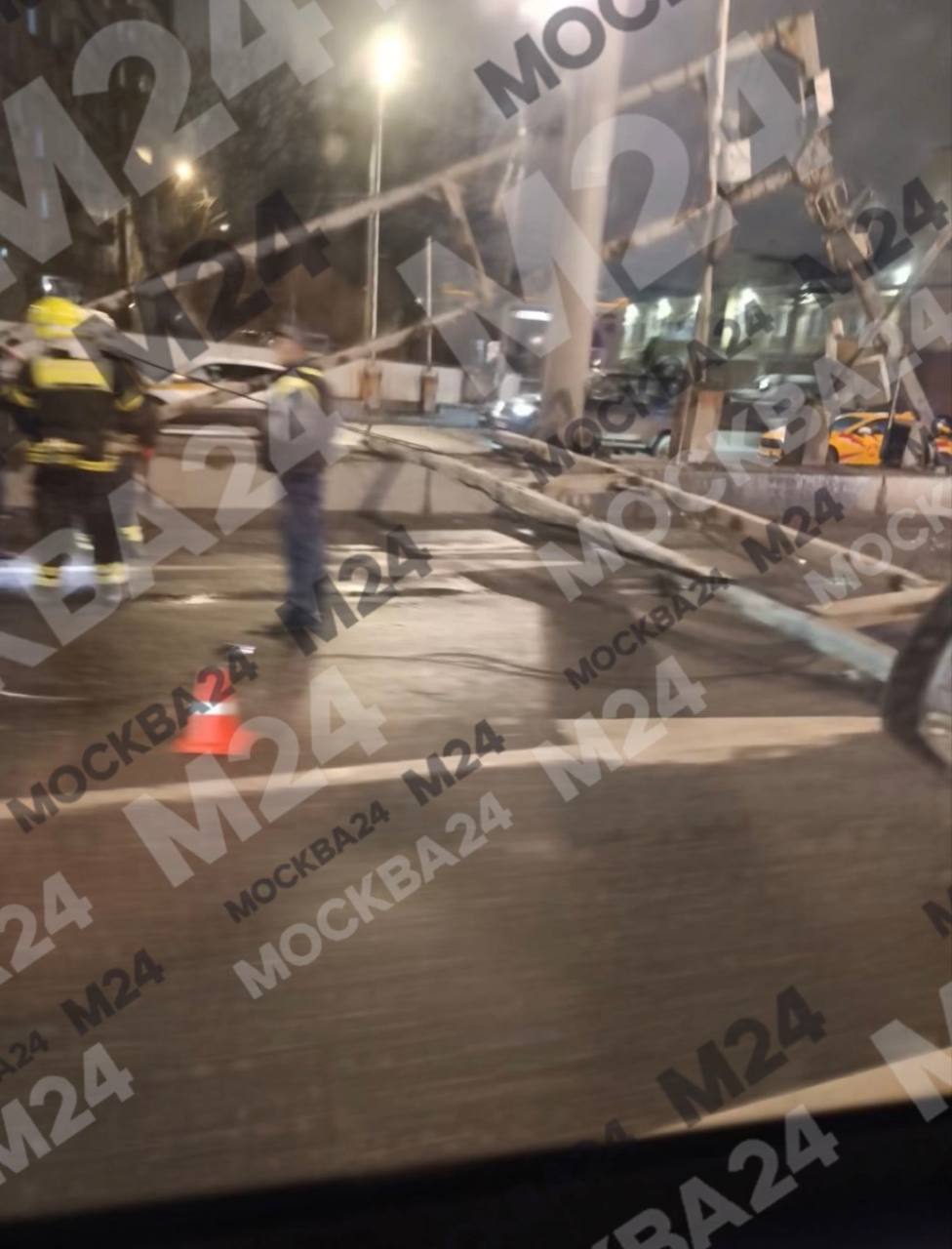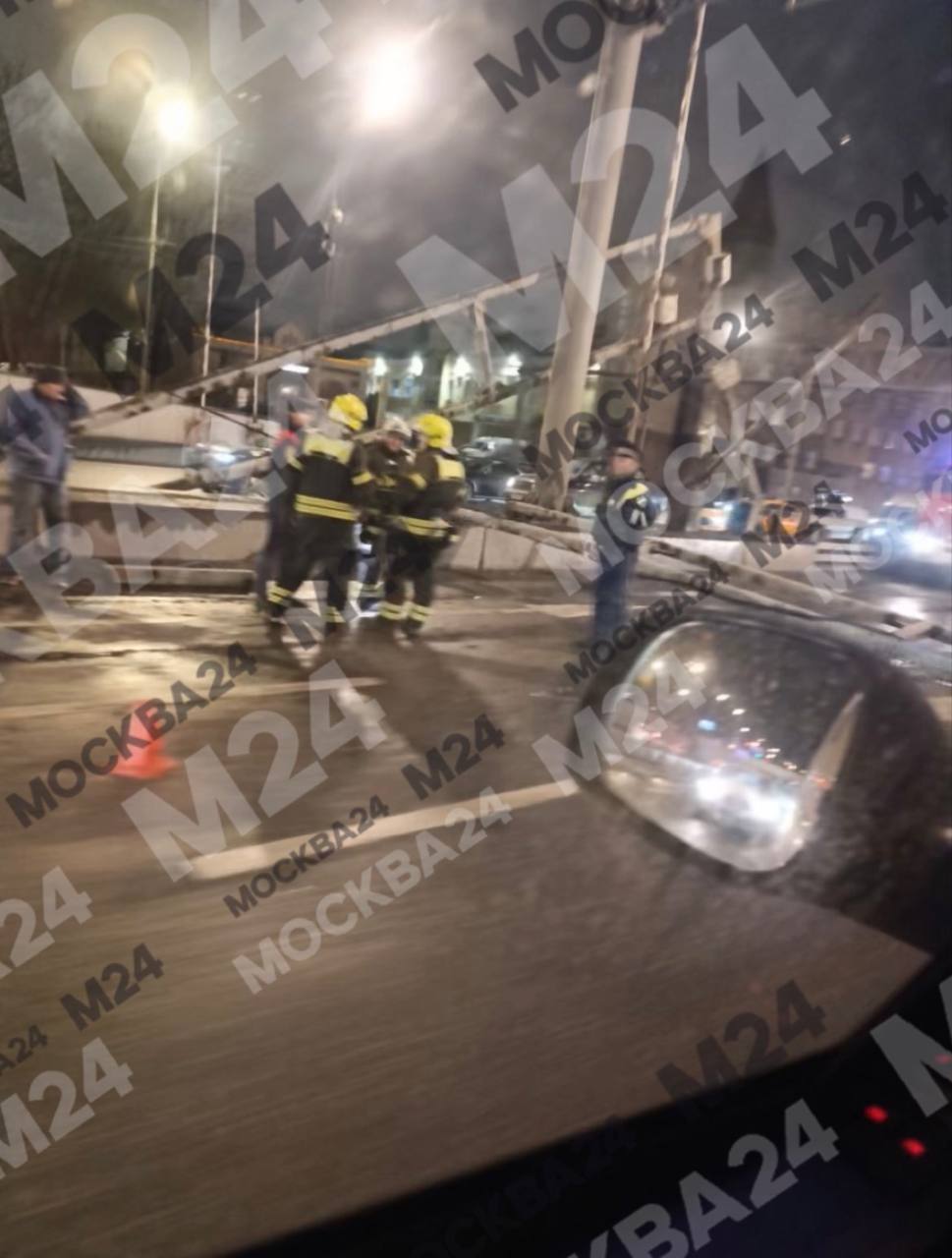 Грузовик снёс П-образную опору на внутренней стороне ТТК в районе Спартаковской площади.