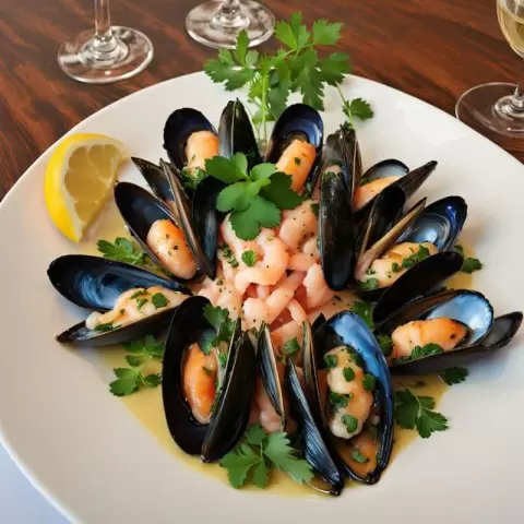 - Карнавал морских ракушек: Мидии, кальмары и креветки в сочетании с белым вином и свежими травами подарят вам море вкуса.