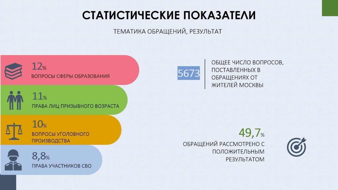 Ключевые данные из доклада Татьяны Потяевой о деятельности Уполномоченного по правам человека в городе Москве в 2025 году.