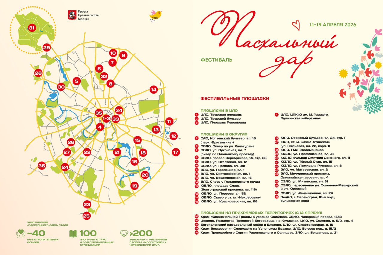 Этот фестиваль — светлое событие столицы, ставшее уже доброй традицией. "Пасхальный дар" — благотворительное мероприятие, где можно помочь тем, кто нуждается, и, конечно, нашим воинам, которые сражаются в зоне специальной военной операции.