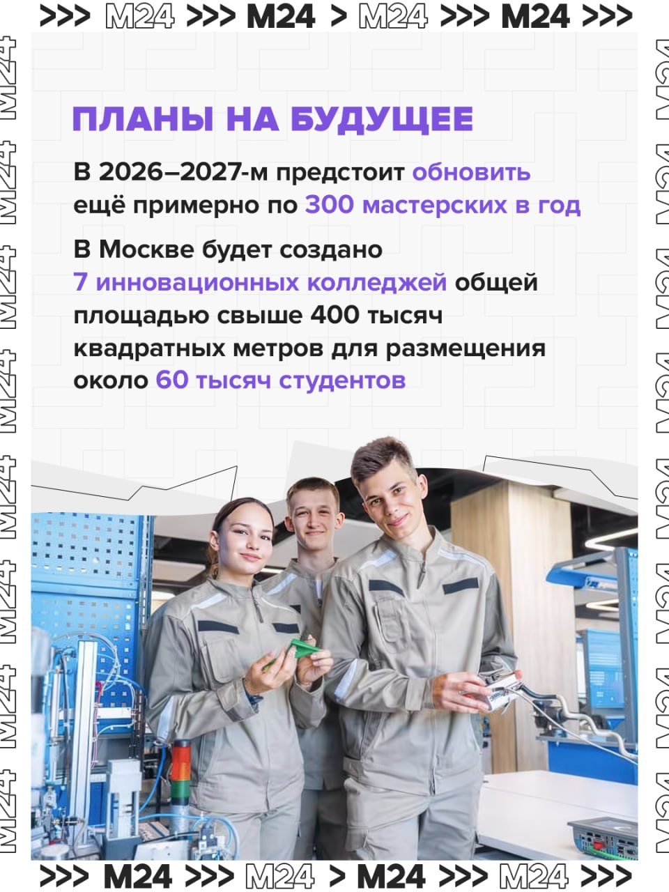В ближайшие пять лет планируется полностью обновить их инфраструктуру — переоборудуют тысячи лабораторий и мастерских. А ещё создадут семь инновационных колледжей, где будут готовить специалистов для IТ, здравоохранения, промышленности, транспорта, строительства и других сфер.