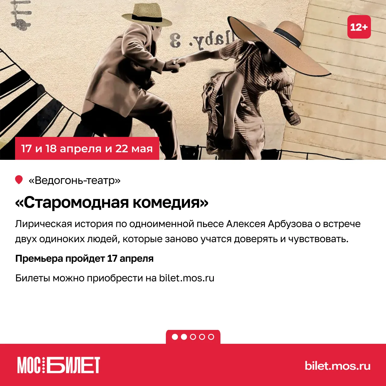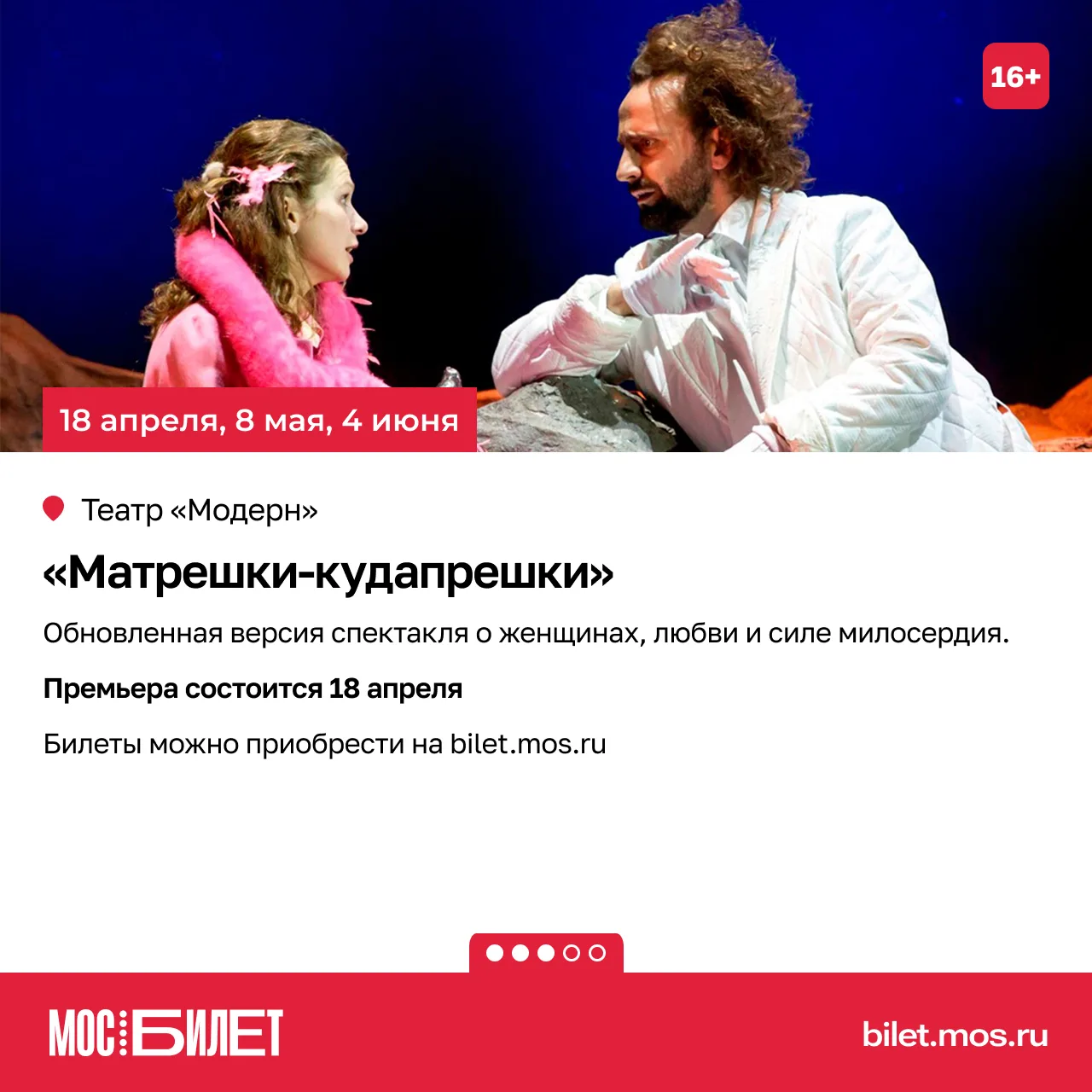 Это четыре истории, разные по интонации, но объединенные вниманием к человеку и его чувствам. Билеты можете найти на bilet.mos.ru.