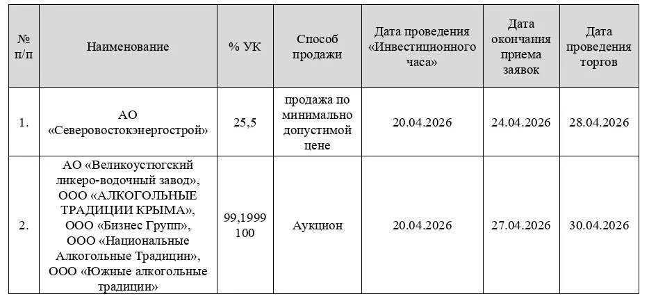 Росимущество сообщает о проведении «Инвестиционных часов» по объявленным торгам в отношении корпоративных активов.