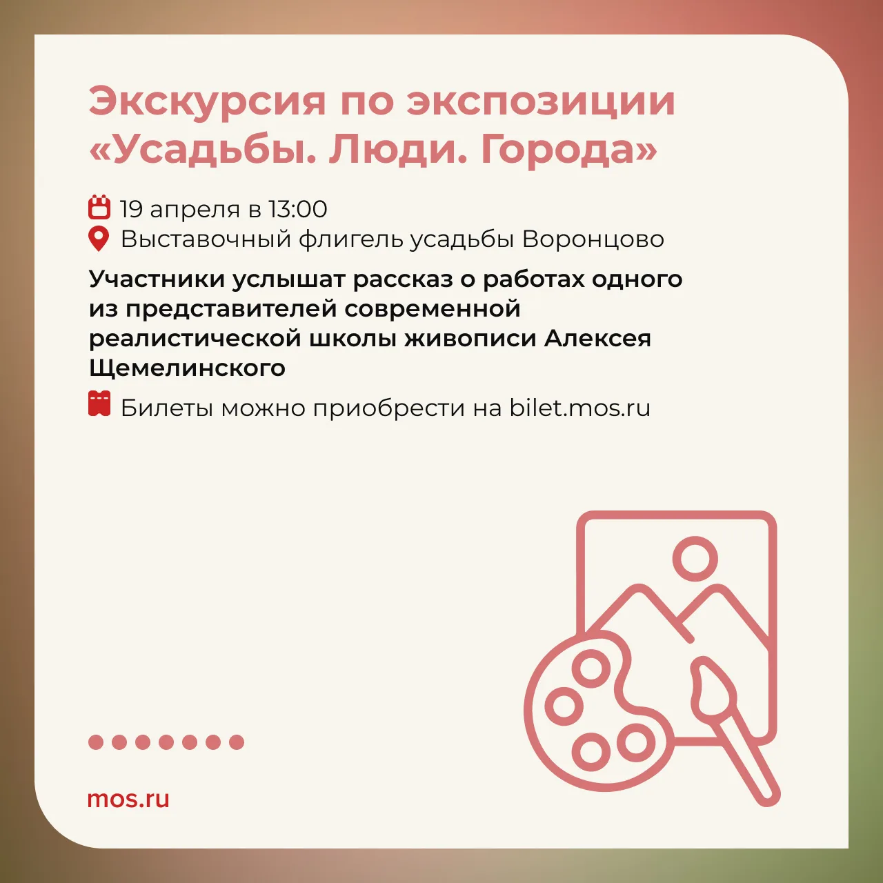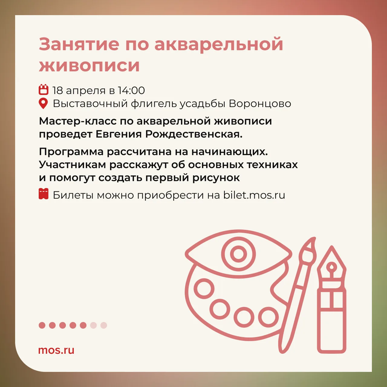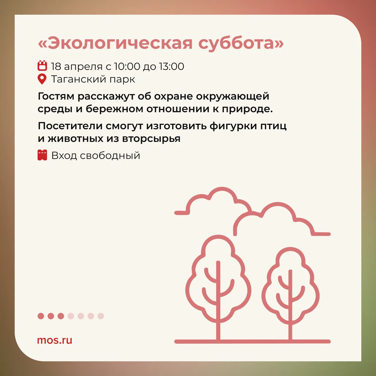 Выходные в Москве — время прогулок и новых впечатлений в парках города. Вас ждут выставки об эпохе Просвещения, экологические активности и мастер-классы, исторические экскурсии, занятия по акварельной живописи и открытые тренировки на свежем воздухе.