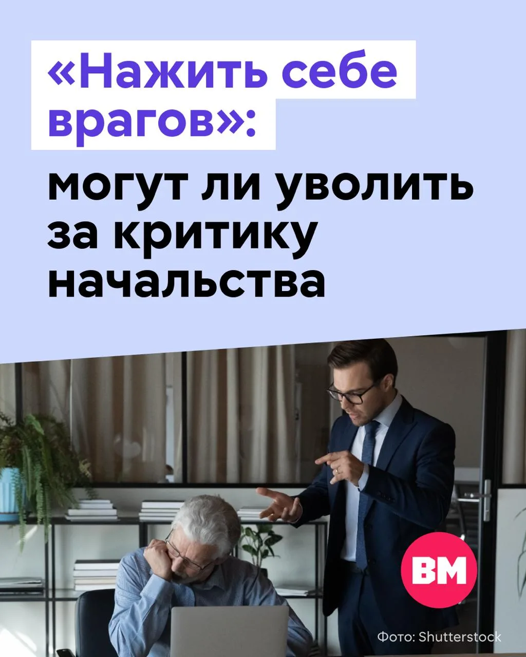 По словам юриста Елены Рудаковой, в законодательстве РФ нет статьи, которая разрешала бы увольнение за критику начальства.