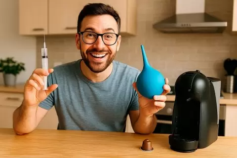 Капсульные кофемашины — незаменимые спутники утреннего кофе, однако со временем они сталкиваются с проблемой накипи, образующейся в системе подачи воды. Это не только тормозит работу устройства, но и негативно сказывается на вкусе любимого напитка. Как действовать, если машина начинает «хрипеть» и варит слабый кофе, а под рукой нет фирменных чистящих средств? Ответ прост: воспользуйтесь доступными инструментами — шприцом и спринцовкой!