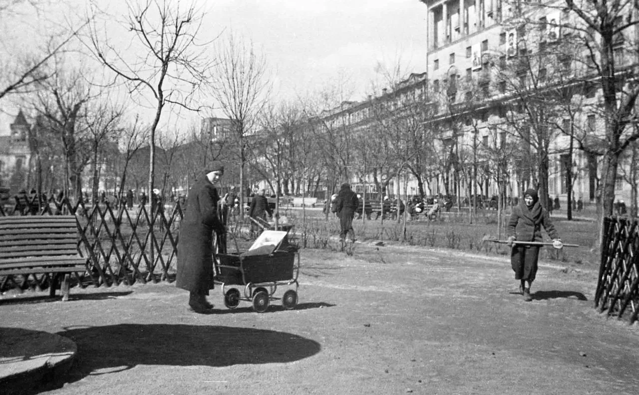 Фотофакт: в Ильинском сквере весной. Москва. 1941 г. Фото Г.И. Темнова (сдатчик Т.В. Малинина, по материалам Акции «Москва – с заботой об истории. Московская фотолетопись»). Главархив Москвы