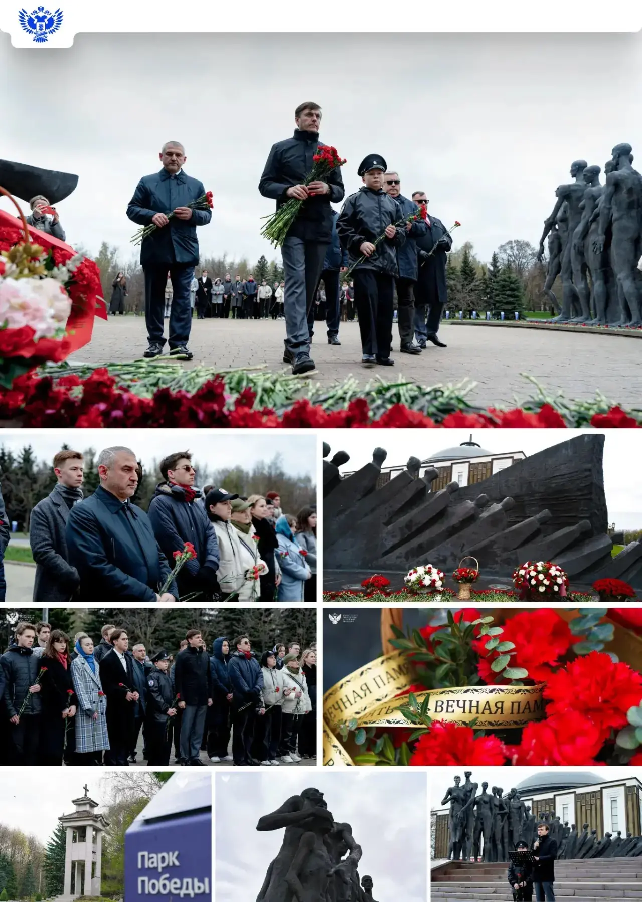 Глава Минпросвещения России вместе с ректором Московского педагогического государственного университетаАлексеем Лубковым и студентами вуза принял участие в церемонии возложения цветов к скульптурной композиции «Трагедия народов» в Парке Победы в Москве.