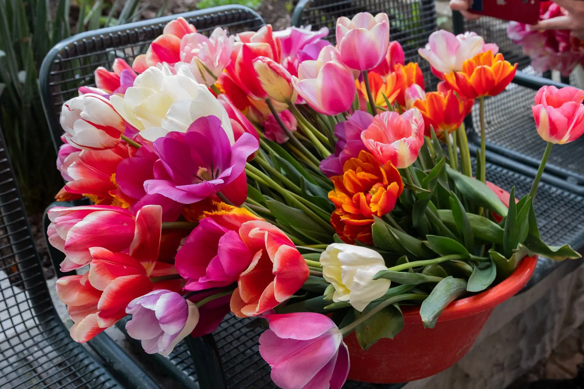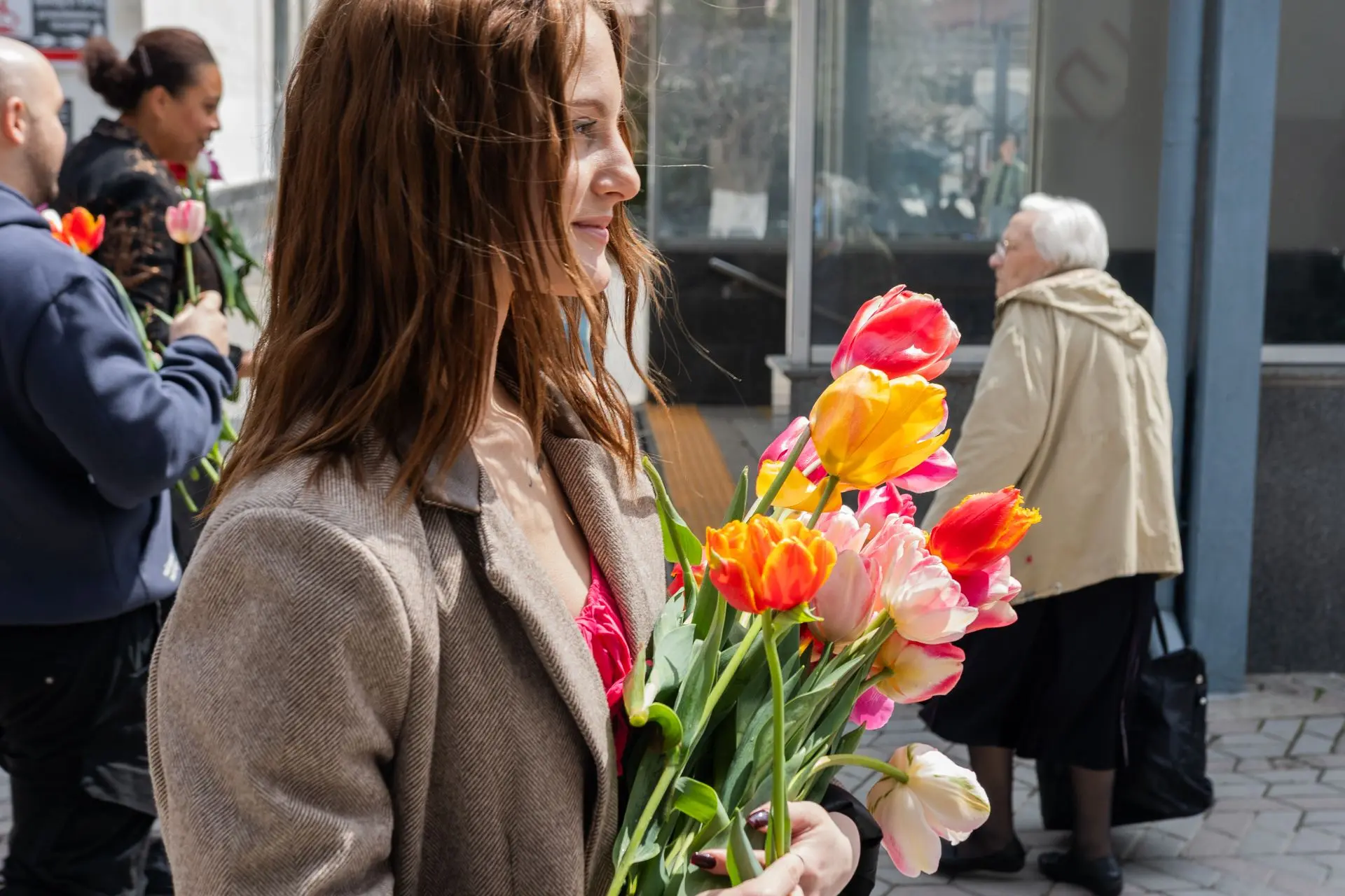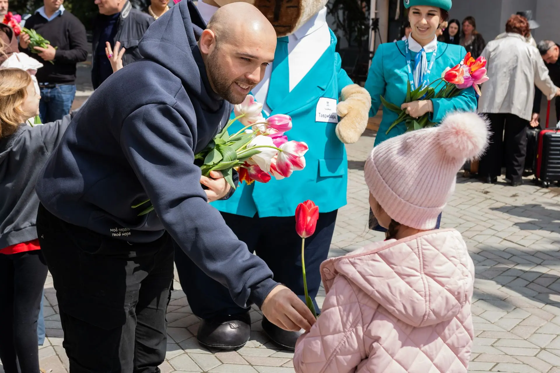 Всего пассажиркам вручили больше 300 тюльпанов. Все цветы выращены в местном Никитском ботаническом саду.