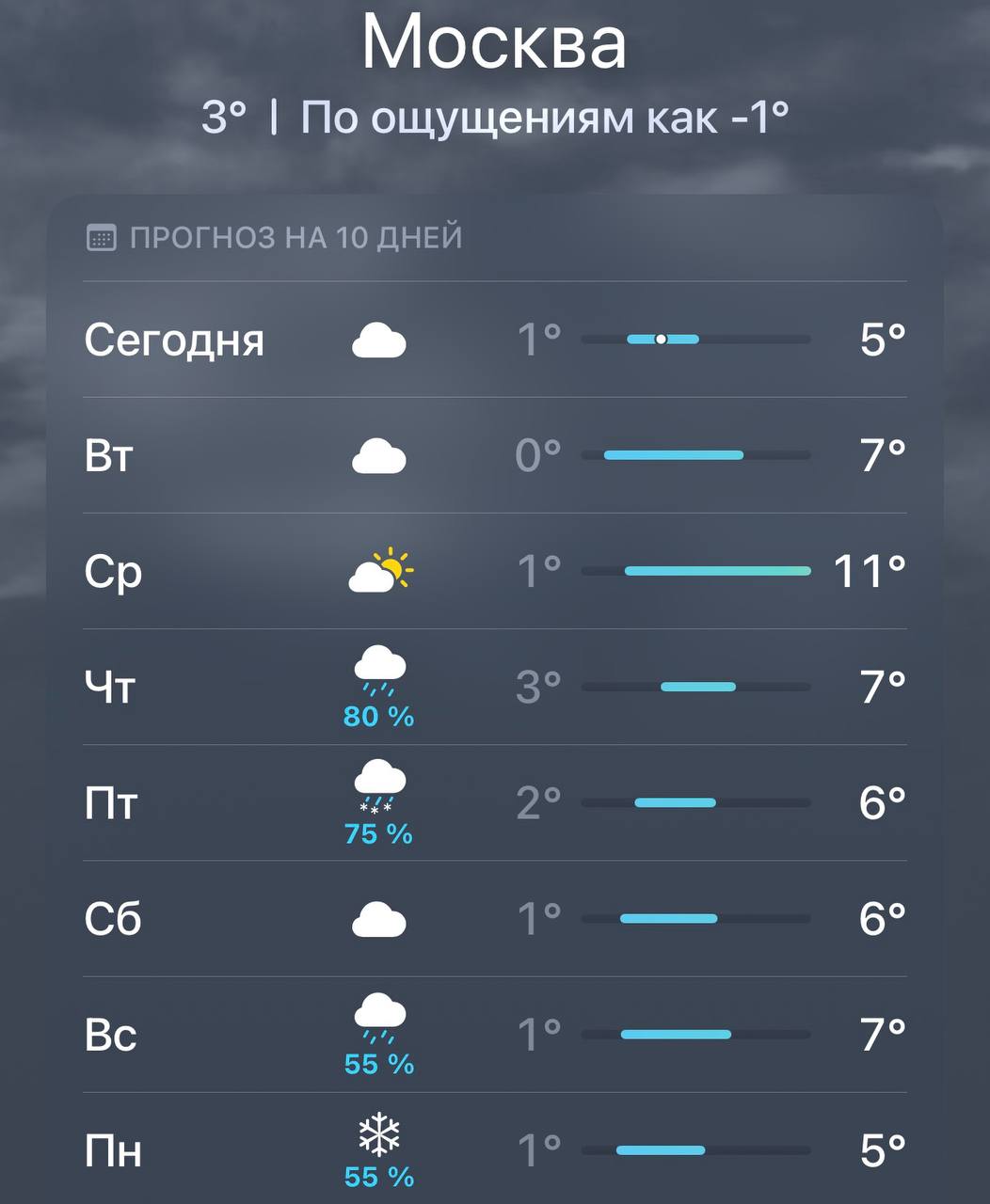 А с четверга снова похолодание. К концу недели — ливни в перемешку со снегом.