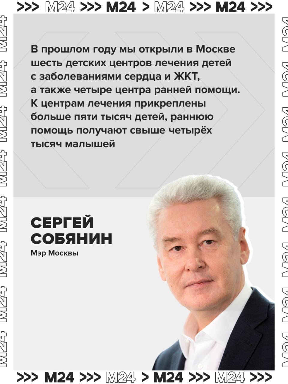 В городе заработали специализированные центры: за прошлый год открылись 6 детских центров лечения заболеваний сердца и ЖКТ и 4 центра ранней помощи. К ним прикреплены свыше 5 тысяч детей, а раннюю помощь получают более 4 тысяч малышей.