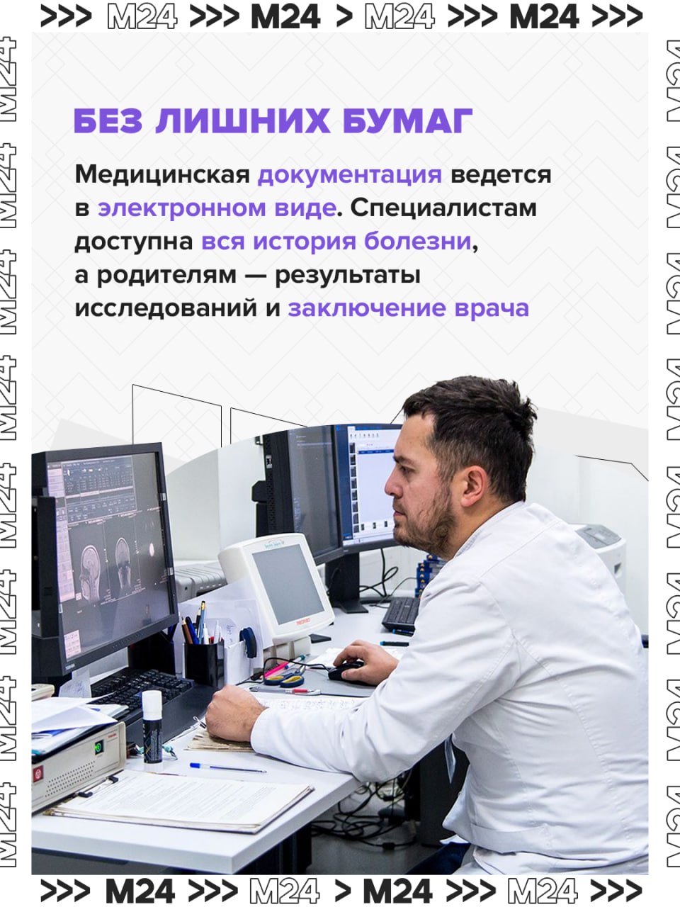 Плюс ко всему — электронная медкарта: вся история болезни под рукой у врачей, а результаты исследований и заключения доступны родителям. Благодаря такой системе врачи почти не сталкиваются с запущенными формами детских болезней.