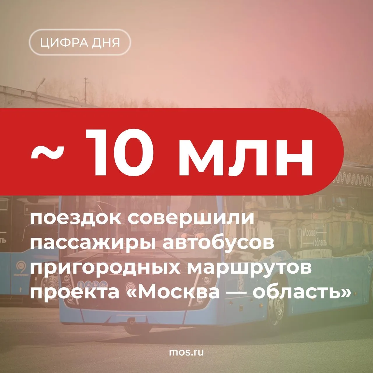 С лета прошлого года в рамках проекта «Москва — область» открылось больше 30 маршрутов. За это время на них совершили около 10 млн поездок. На автобусах можно добраться в Химки, Красногорск, Одинцовский городской округ, Краснознаменск, Солнечногорск и Долгопрудный.