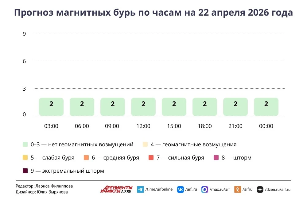 Геомагнитная обстановка в среду, по прогнозам, спокойная. Вероятность магнитных бурь — 7%.