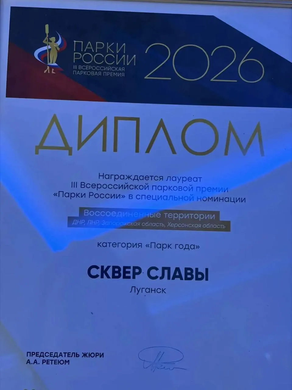 Сквер Славы, расположенный в самом сердце Луганска, стал лауреатом специальной номинации «Воссоединенные территории» (ДНР, ЛНР, Херсонская и Запорожская области). В сквере после масштабной реконструкции появилась аллея героев СВО, летний кинотеатр, уютный освежающий фонтан и современная детская площадка. Спасибо Москве)
