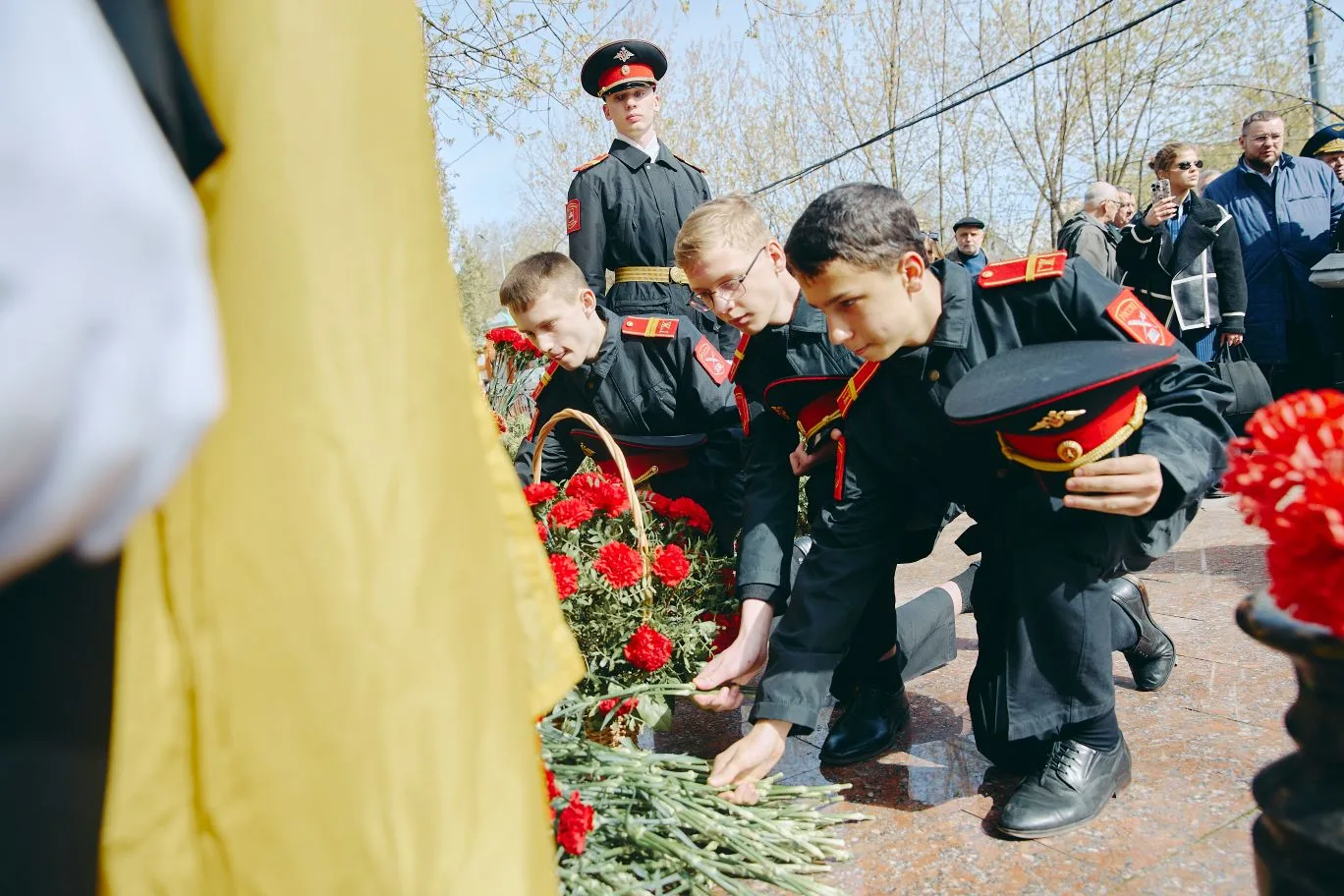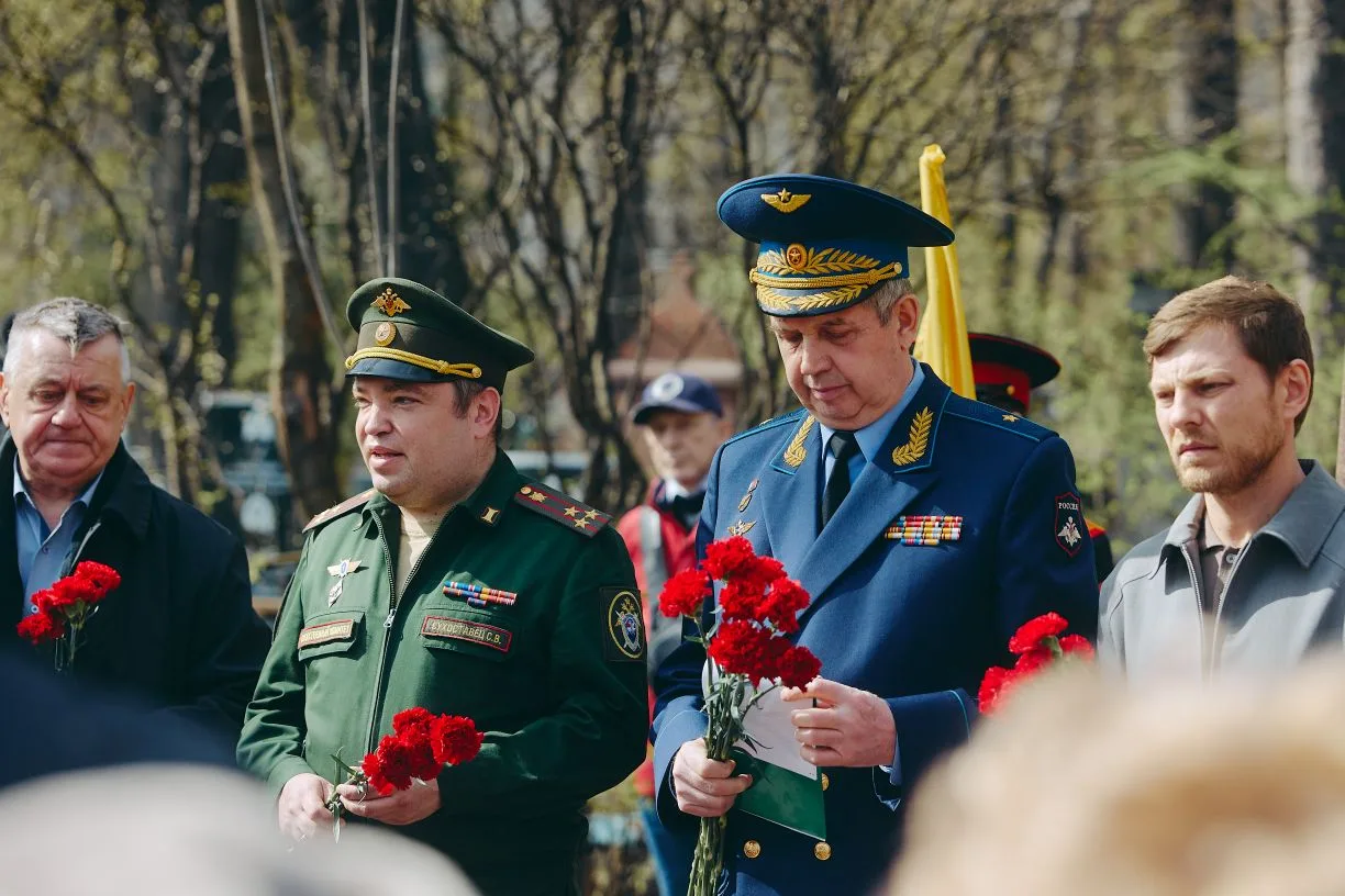 Участники мероприятия собрались у Братской могилы солдат, погибших на боевом посту, чтобы отдать дань глубокого уважения героям. В знак памяти о мужестве, самоотверженности и верности присяге присутствующие почтили павших минутой молчания и возложили цветы к мемориалу.