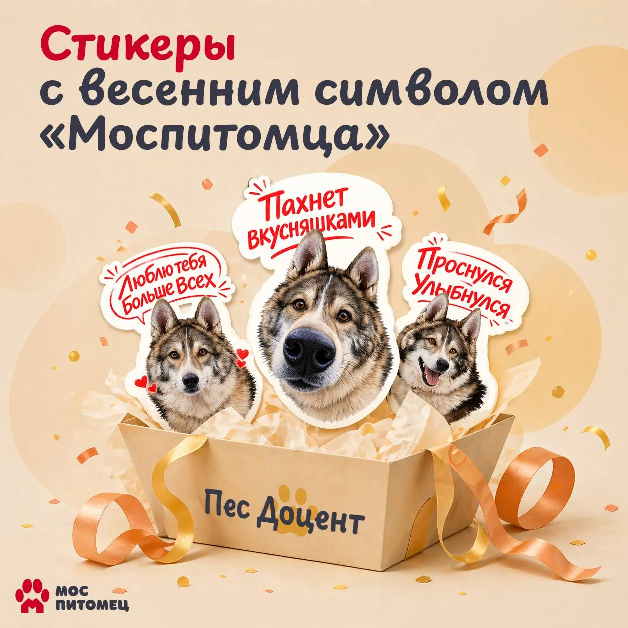 Амбассадор проекта «Моспитомец», пес Доцент, стал героем собственных стикеров в «Максе»