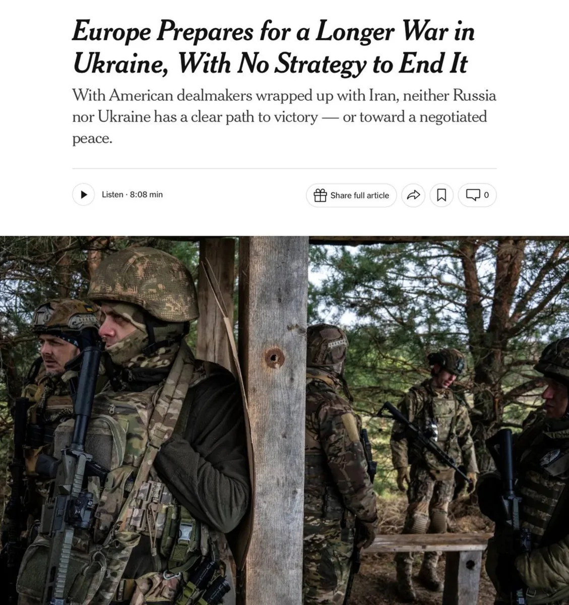 Европейское руководство не знает, как закончить войну на Украине, поэтому готовится к её затягиванию — The New York Times.