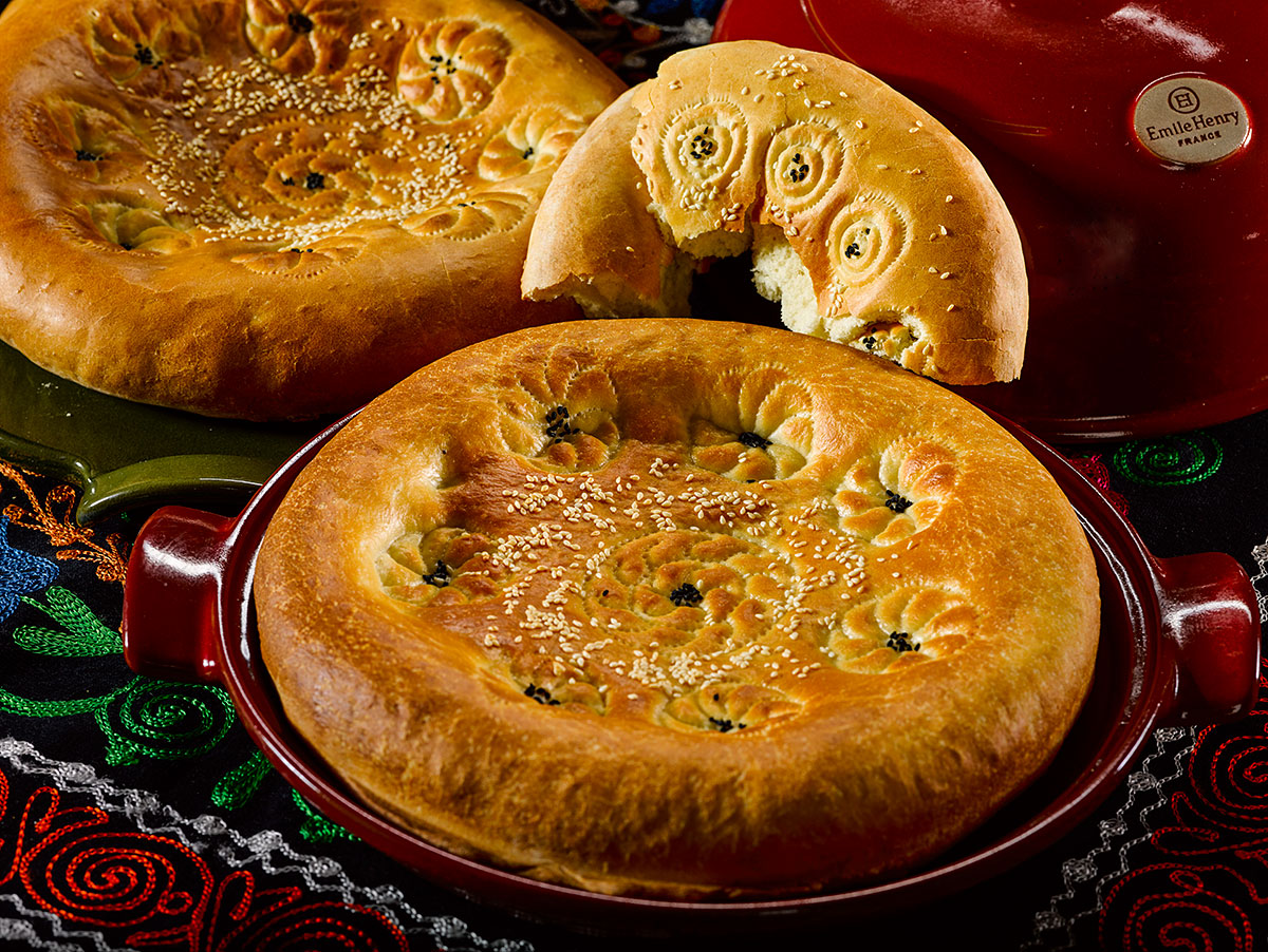 Некоторые пекари считают процесс раскатки с помощью скалки неуместным, утверждая, что лучшая форма достигается подушечками пальцев. Для создания узора на лепешке используют специальный штамп, называемый чекич, который чаще всего символизирует солнце и бесконечность.