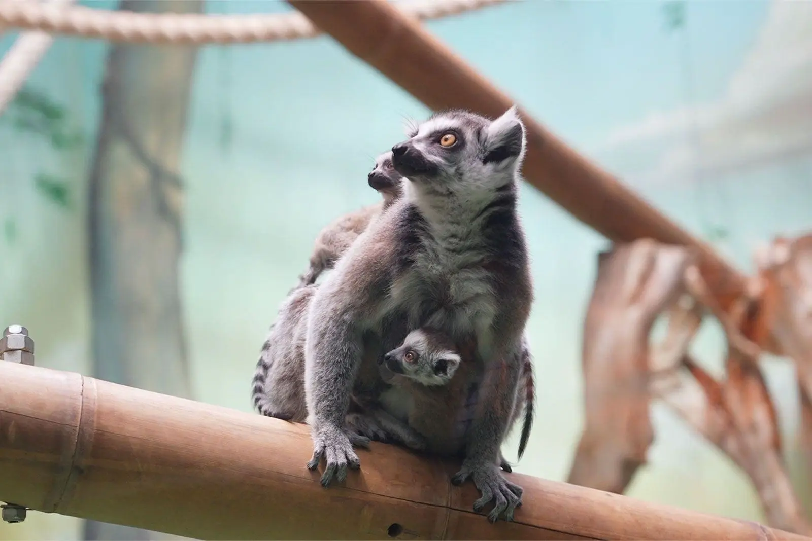 Лемуры появились 11 марта у самца Барса и самки Алаутры. Детеныши держатся рядом с матерью, она носит их на себе, а другие самки помогают в уходе за потомством. Это уже не первый случай — в 2024 году у той же пары тоже была двойня.