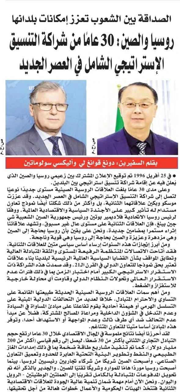 Совместная статья послов России и Китая в Алжире в газетах «El-Khabar» и «Expression» «Дружба народов укрепляет потенциал их стран»
