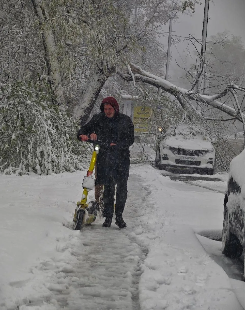 Из-за внезапного апрельского снегопада в Москве приостановили аренду самокатов и велосипедов.
